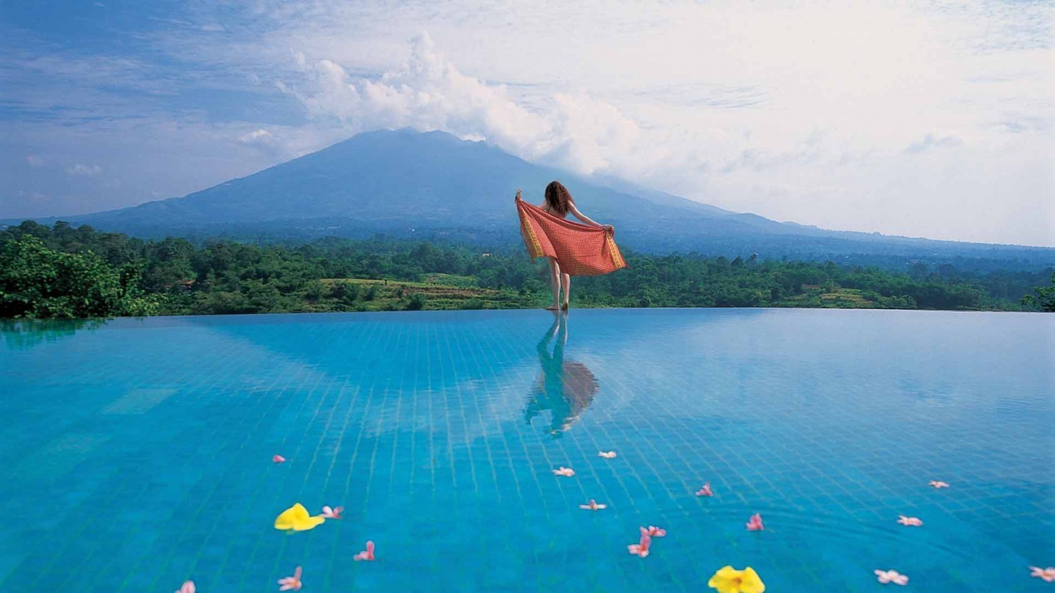 pemandangan spektakuler Gunung Salak, Gunung Pangrango, Gunung Gede, dan Gunung Pancar.
